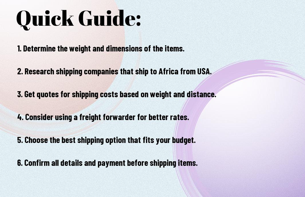 To accurately estimate shipping costs, consider using online calculators or reaching out to shipping companies for quotes based on the specific destination in Africa.